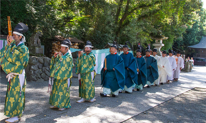 午前9時より。神職は昇殿、奉仕者は拝殿前に整列