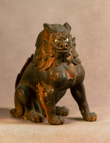 両像ともお互いに拝者側(内側)に体をやや捻って頭部を向け、内側の前肢を手前に引き、もう一方の前肢を前方に踏み出し、拝者側に顔を向ける姿勢をとり、 動きのある動物らしい現実感ある写実表現のなかにも穏やかな作風を示し、獅子狛犬の伝統的な技法をみせる鎌倉時代を代表する作例として貴重なものです。