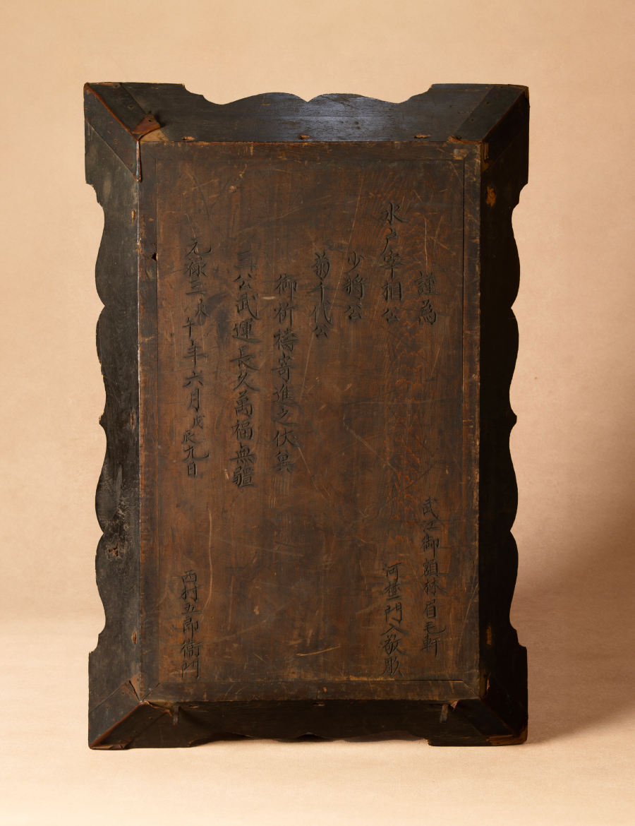 この扁額は、当時の水戸家当主である水戸宰相公(徳川光圀公)をはじめ、若君である少将公・菊千代公の武運長久と繁栄を祈念して奉納されたものです。